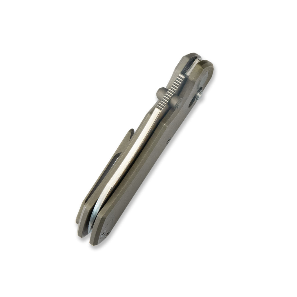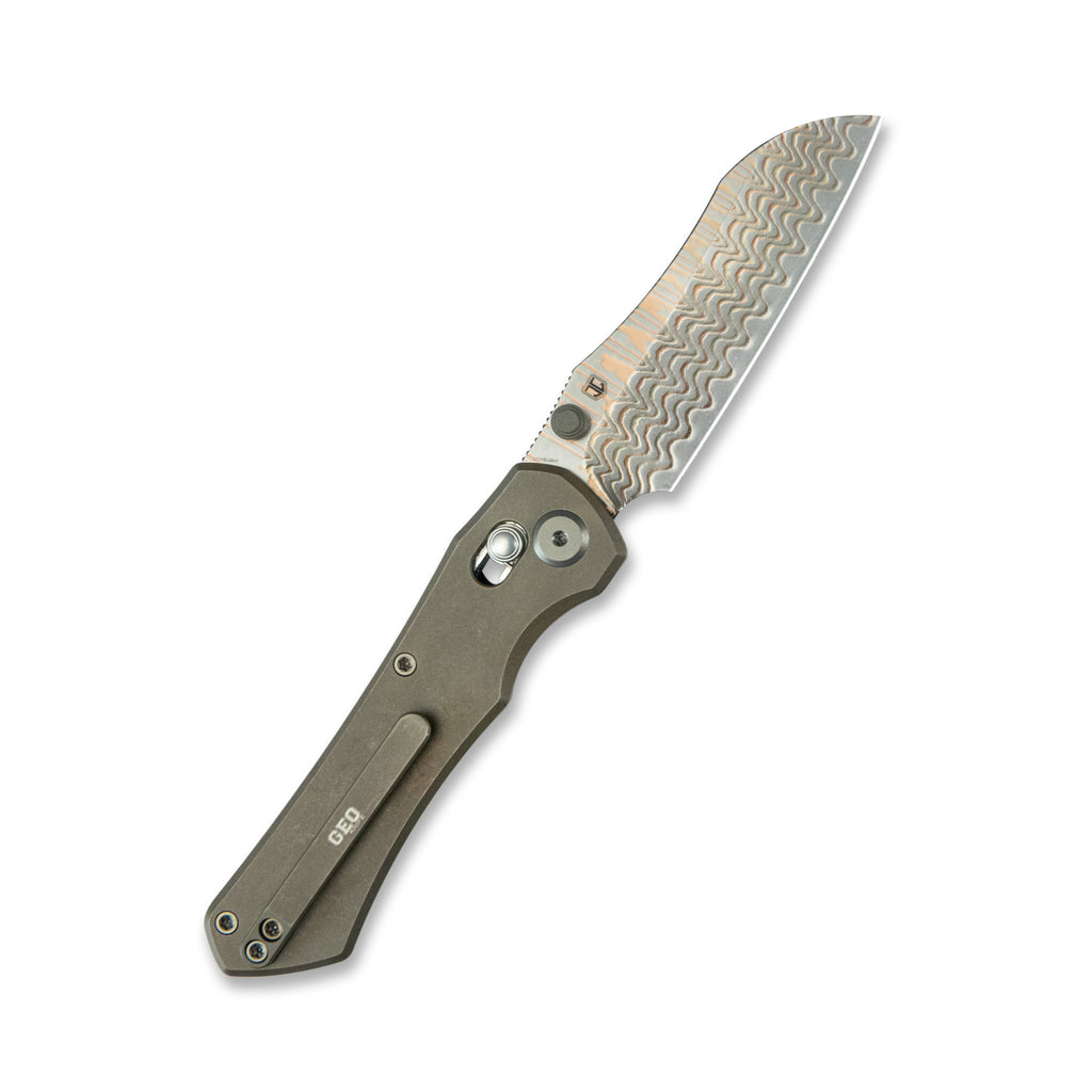 GEO Knife Komodo Axis lock Folding Knife Bronze 6AL4V Titanium Handle 3.1" Damascus Steel & Copper Blade(10Cr15CoMoV) GEO2509D