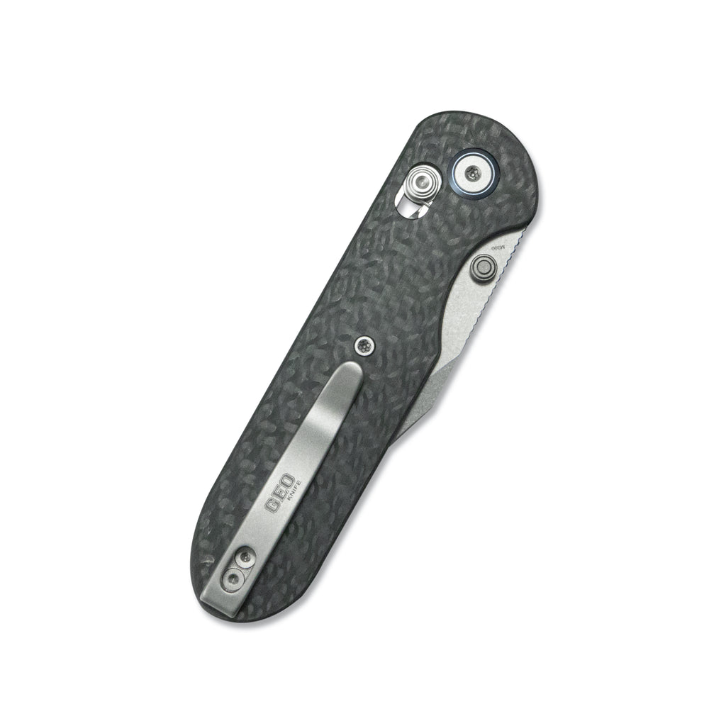 The GEO Knife is a knife that impresses on every level, from its exquisite craftsmanship to high quality, cost-effective for which GEO Knife is renowned. Designed for the outdoors, the campsite, the ergonomics are outstanding, ensuring an intuitive and secure grip in any position. Crafted from premium Bohler M390 (M390 is a high-performance stainless steel used in the production of knives and other cutting tools. It is a powder metallurgy steel, which means that it is made by combining multiple types of metal powders into a single billet, which is then heated and compressed to create a solid steel.), performance stainless steel and integral Carbon Fiber , the GEO Knife embodies durability and superior performance.This stylish Knife takes ultralight utility to the extreme and ideal for daily carrying. If you are looking to add a new EDC knife, rest assured you're making the right choice when you go with an Geo knife.
